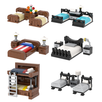 MOC4177-4182 mai vàng nhạt màu xanh xám giường đôi lớn màu đỏ và màu xanh đen và trắng Giường Tầng Lắp ráp khối xây dựng đồ chơi trẻ em